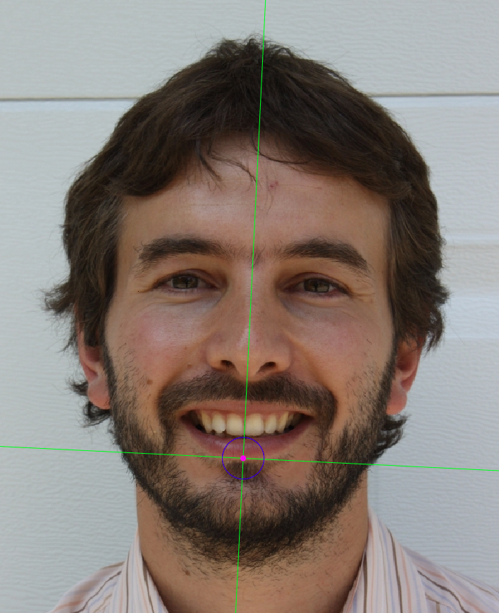 Place labiale superius over the most anterior point at the superior margin of the vermillion border of the upper lip. The horizontal line should be placed over the vermillion border of the upper lip and the vertical line on the most anterior point at the vermillion border.