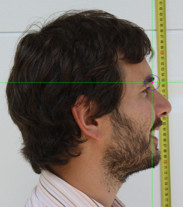 Figure 20. Nasion in oblique view. Approximation in the image.