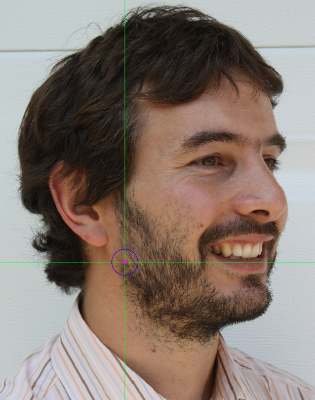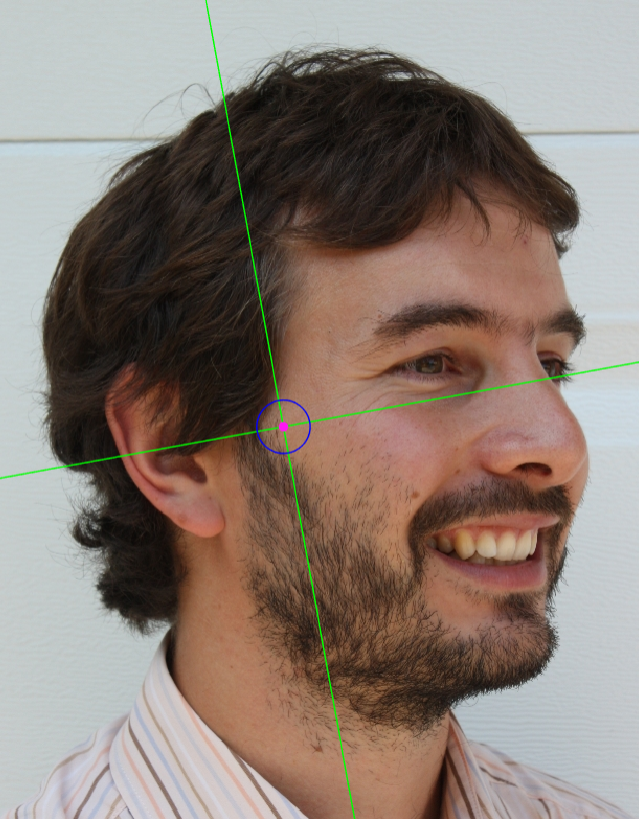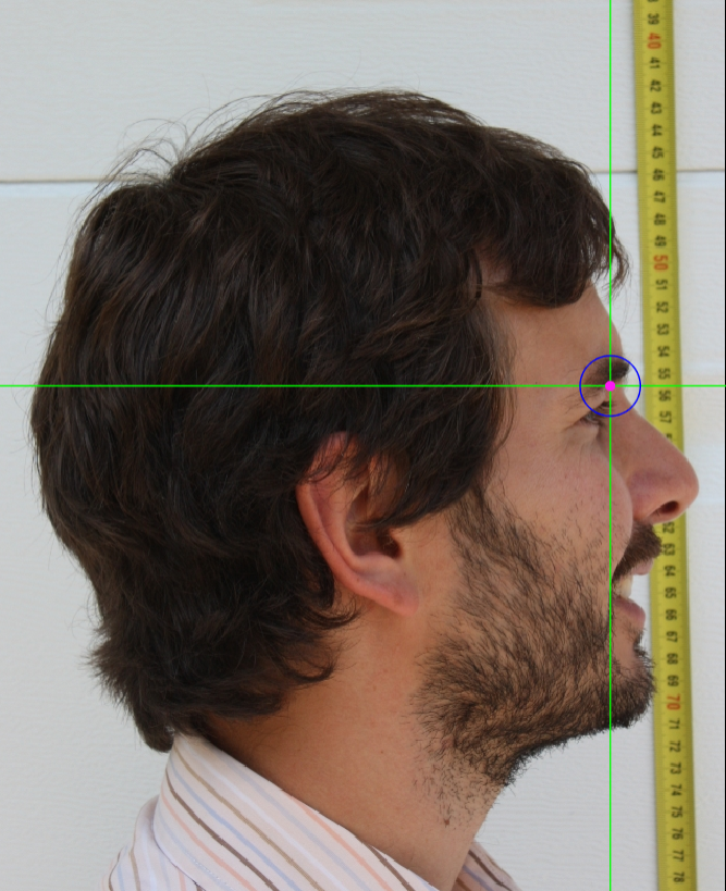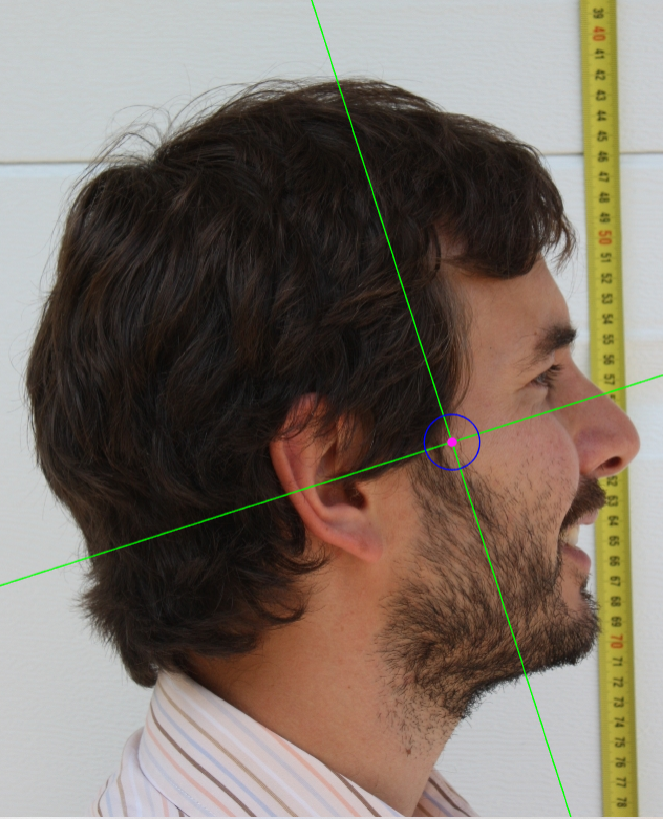 Figure 43. Example of a photograph where the subject’s hair is obscuring partially the ear, preventing from marking tragion.