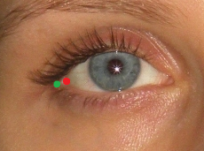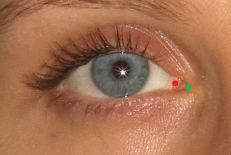 Figure 29. Example of a photograph in which the lateral canthus of the eye is obscured by lashes (left). Estimation of the right exocanthion (right).