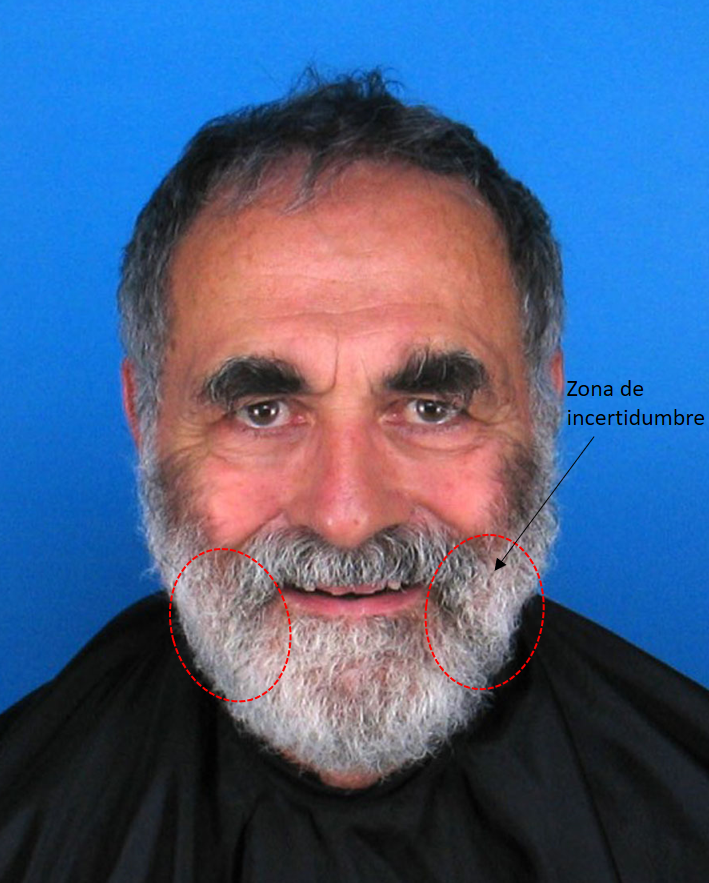 Figure 76. Subject with a thick beard that obscures the view of the facial contour, rendering the location of both gonia unfeasible.